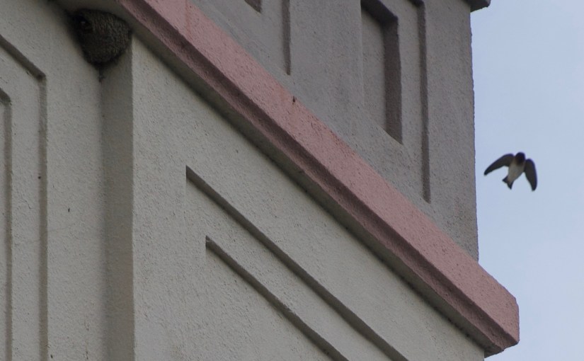 Cliff swallows built these amazing little mud nests on Laney College buildings and on the 12th bridge (maybe they’ll start new ones on the 10th as well), this year in 2018 (and maybe previous years, if so I missed it) on the Oakland Auditorium building. Cliff swallows seem to get up high into the sky too, you might see then swirling high above Laney.