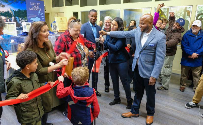 Mayor Libby Schaaf then took the stage to thank everyone and honor Stephanie Benavides for her contributions to the RNC over the last 40 years. She shared her own childhood experiences at the RNC being mentored by Stephanie and shared the Patricia Polacco picture book, I Can Hear the Sun, written about Stephanie. Stephanie was also awarded a plaque to hang in the RNC and while local children held both ends she, together with the new lead naturalist, Angelina Manno, cut the ribbon officially reopening the RNC.