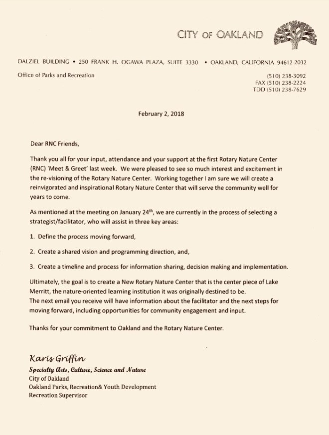 January 24th, 2018, some 60+ people came out to the Lake Merritt Sailboat House on very rainy night to talk about the Rotary Nature Center and what it might become at an Oakland Parks, Recreation, and Youth Development (OPRYD) “Meet & Greet”.